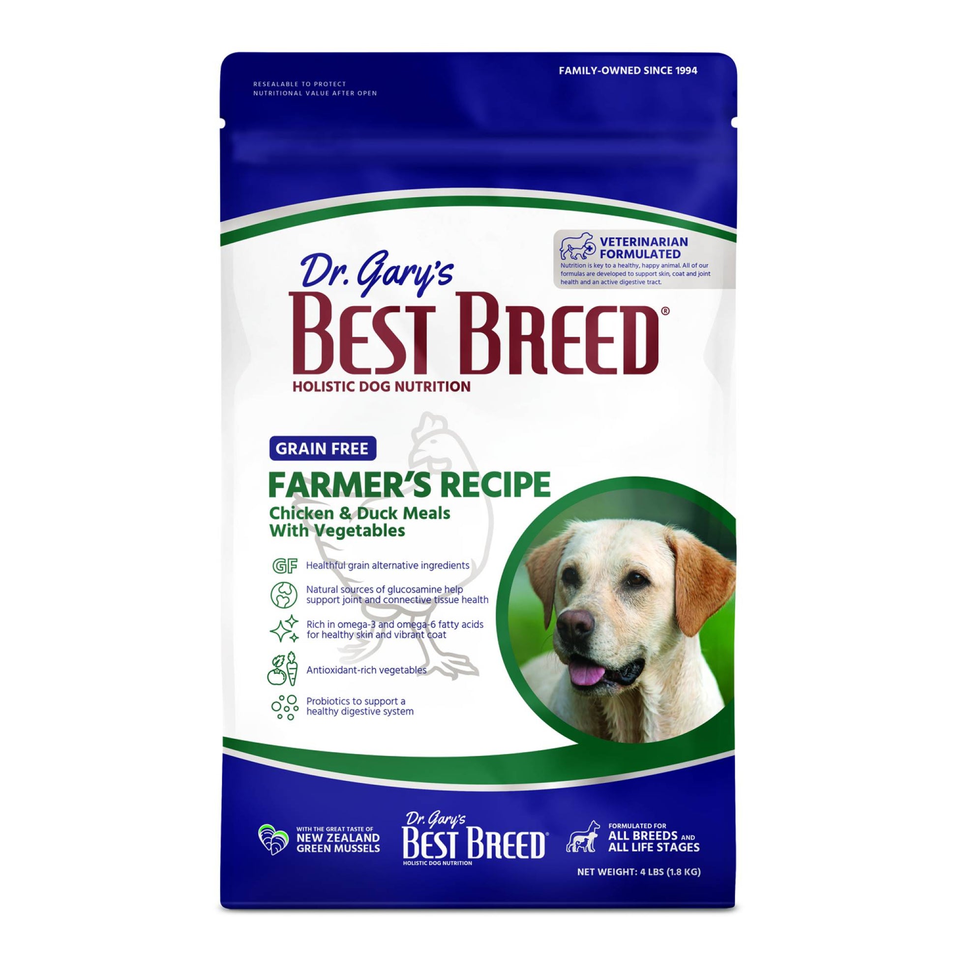 - Best Breed Grain Free Farmer’s Recipe is formulated to meet the nutritional levels established by the AAFCO (Association of American Feed Control Officials) Dog Food Nutrient Profiles for all life stages, including growth of large size dogs (70lbs. or more as an adult). This formula will benefit dogs of sizes and life stages (puppy through senior).