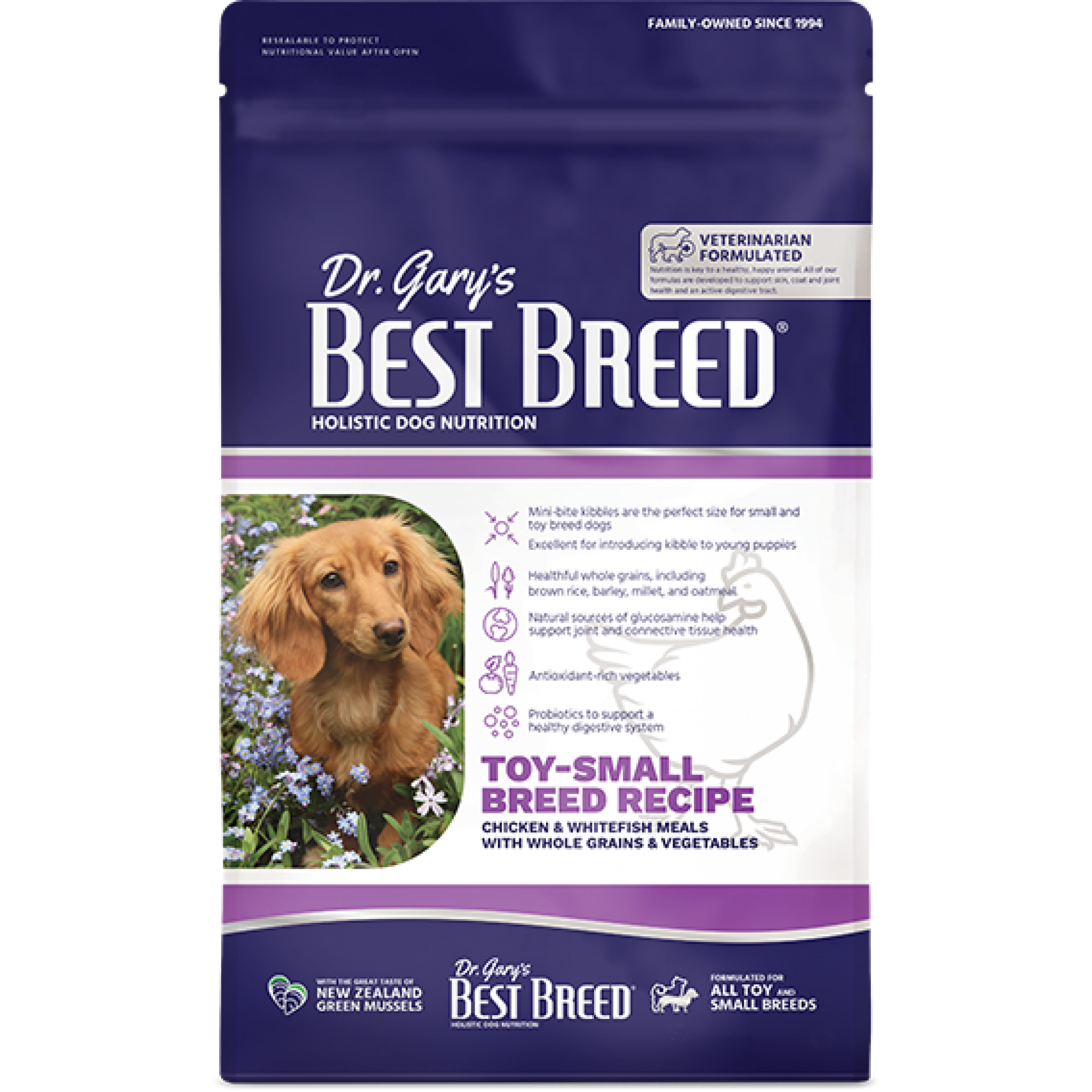 Holistic blend of chicken, fish, whole grains and vegetables that is perfect for all toy and small breed dogs.