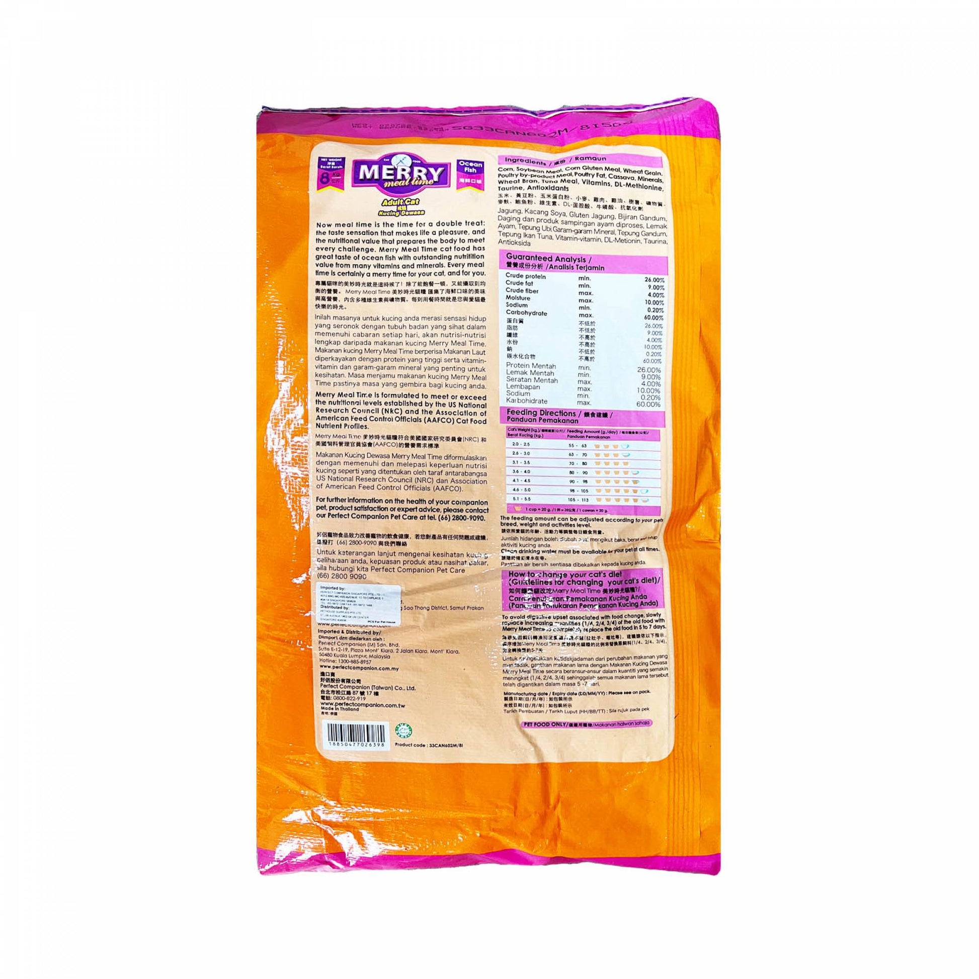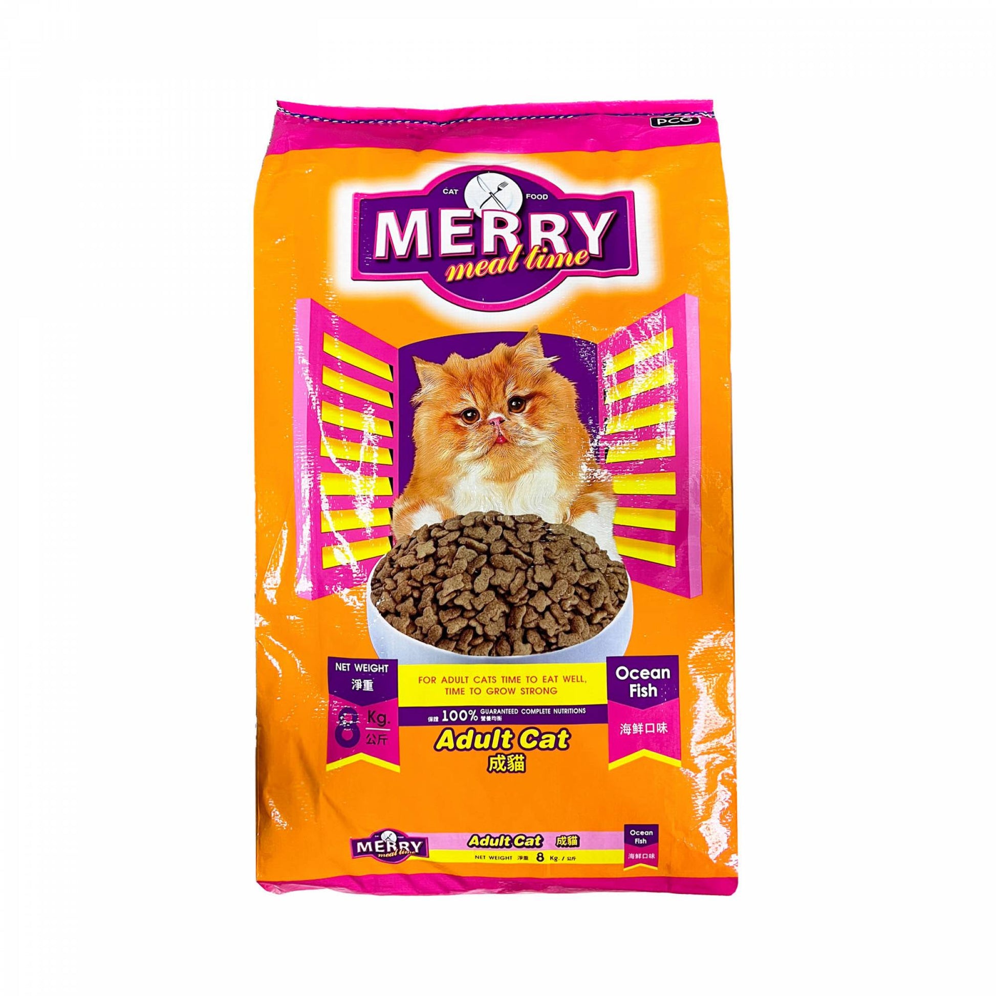 Merry Meal Time cat food has great taste of mixed seafood with outstanding nutrition value from many vitamins and minerals. Every meal time is certainly a merry time for your cat, and for you.