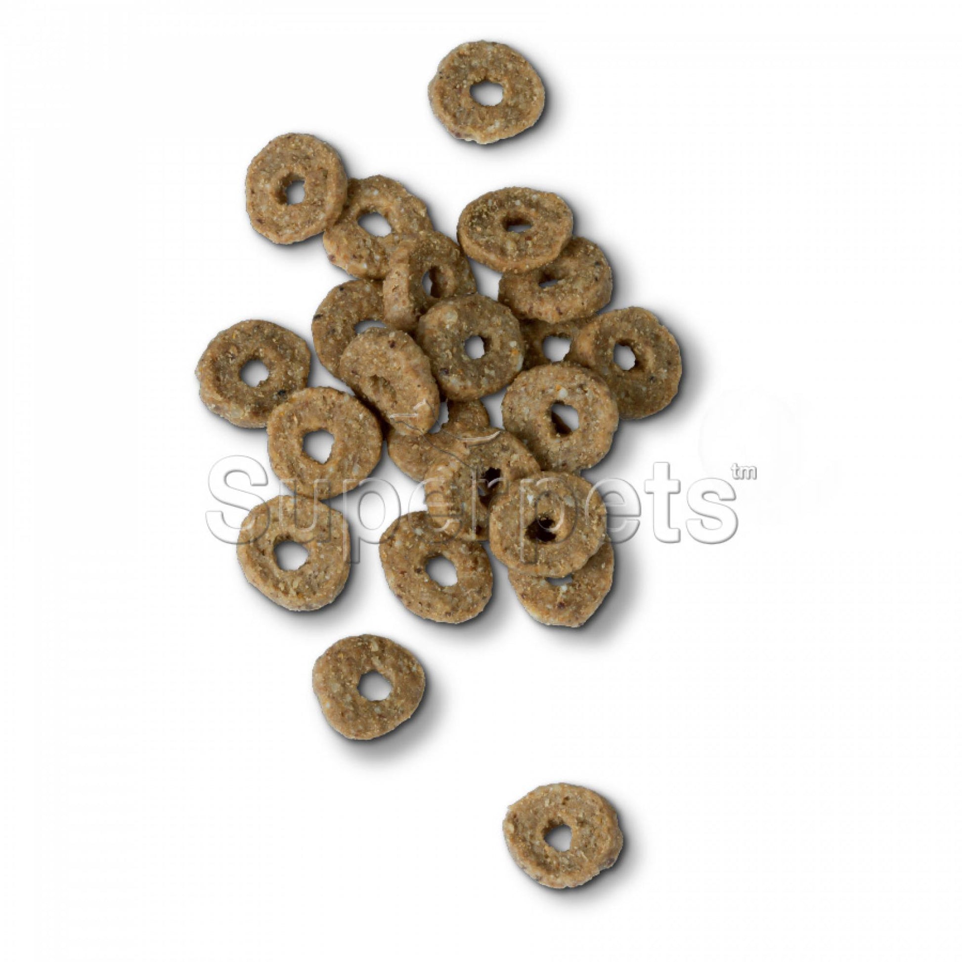 Chicken, turkey, chicken meal (natural source of glucosamine and chondroitin sulfate), turkey meal, cracked pearled barley, whole grain brown rice, peas, oatmeal, white rice, faba beans, millet, pea starch, chicken fat (preserved with mixed tocopherols), ground flaxseed, natural flavor, tomato pomace, duck, salmon, salt, calcium carbonate, potassium chloride, choline chloride, glucosamine hydrochloride, dried chicory root, dried kelp, carrots, apples, tomatoes, blueberries, spinach, cranberries, rosemary extract, parsley flakes, mixed tocopherols (preservative), citric acid (preservative), zinc proteinate, zinc oxide, vitamin E supplement, yucca schidigera extract, ferrous sulfate, L-Carnitine, manganous oxide, manganese proteinate, copper sulfate, vitamin A supplement, d-calcium pantothenate, niacin supplement, sodium selenite, copper proteinate, riboflavin supplement, dried Lactobacillus acidophilus fermentation product, dried Lactobacillus casei fermentation product, dried Lactobacillus plantarum fermentation product, dried Enterococcus faecium fermentation product, thiamine mononitrate, calcium iodate, pyridoxine hydrochloride, vitamin D3 supplement, cobalt carbonate, folic acid, biotin, vitamin B12 supplement.