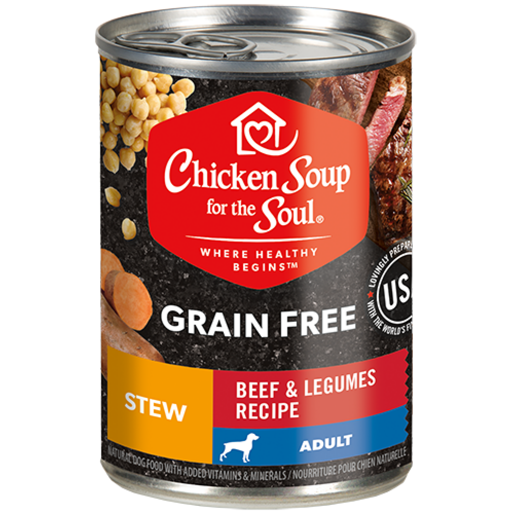 Chicken Soup for the Soul Dog Grain-Free Stew 13oz Adult Beef & Legumes Recipe