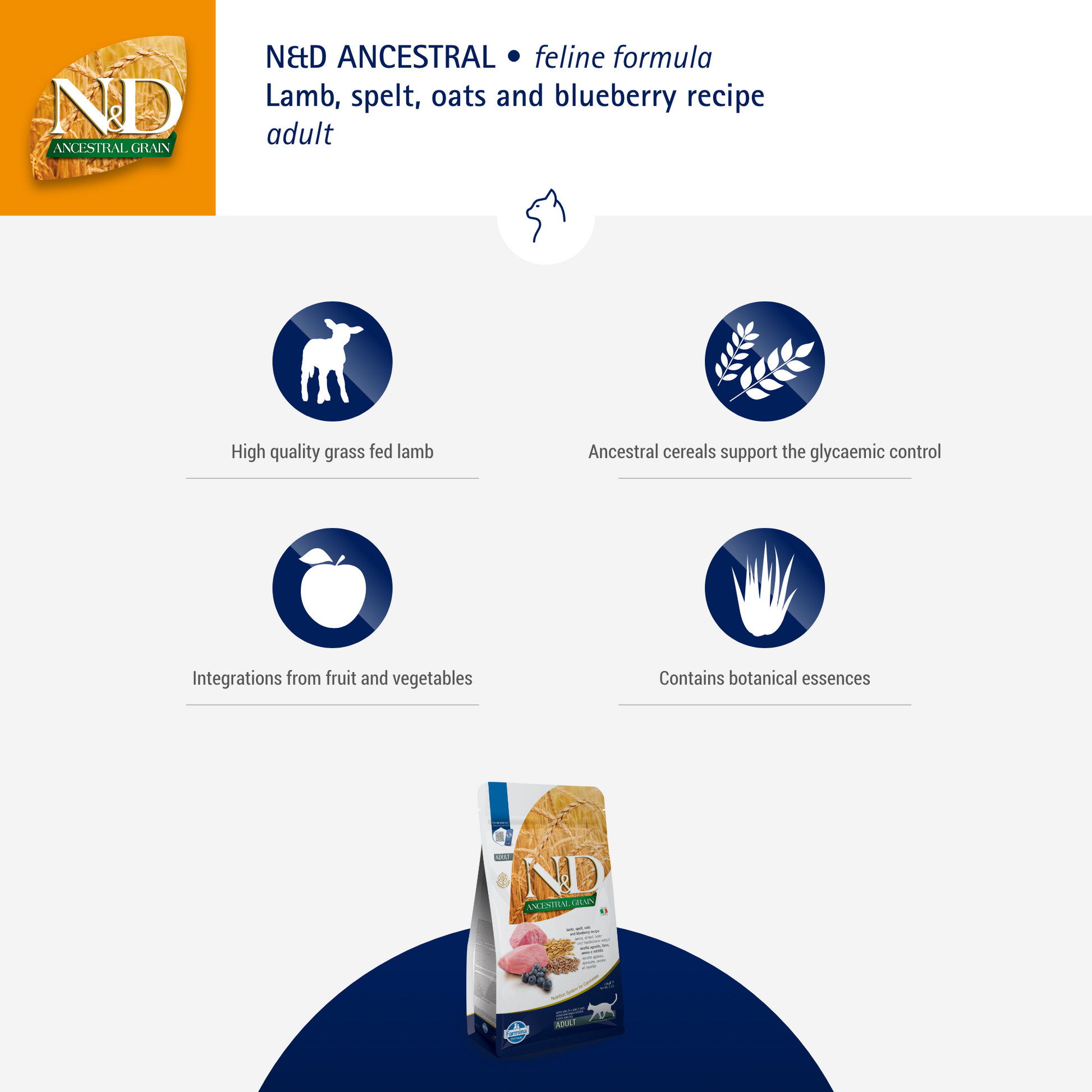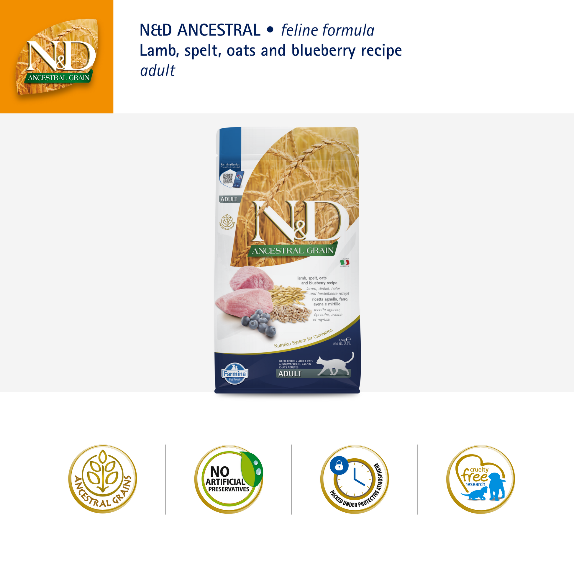 Farmina N&D Ancestral Grain Cat Adult - Lamb & Blueberry