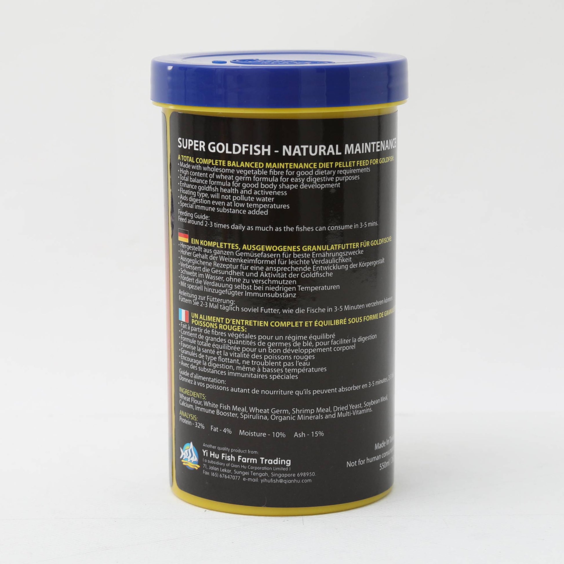 A total complete balanced maintenance diet pellet feed for goldfish.