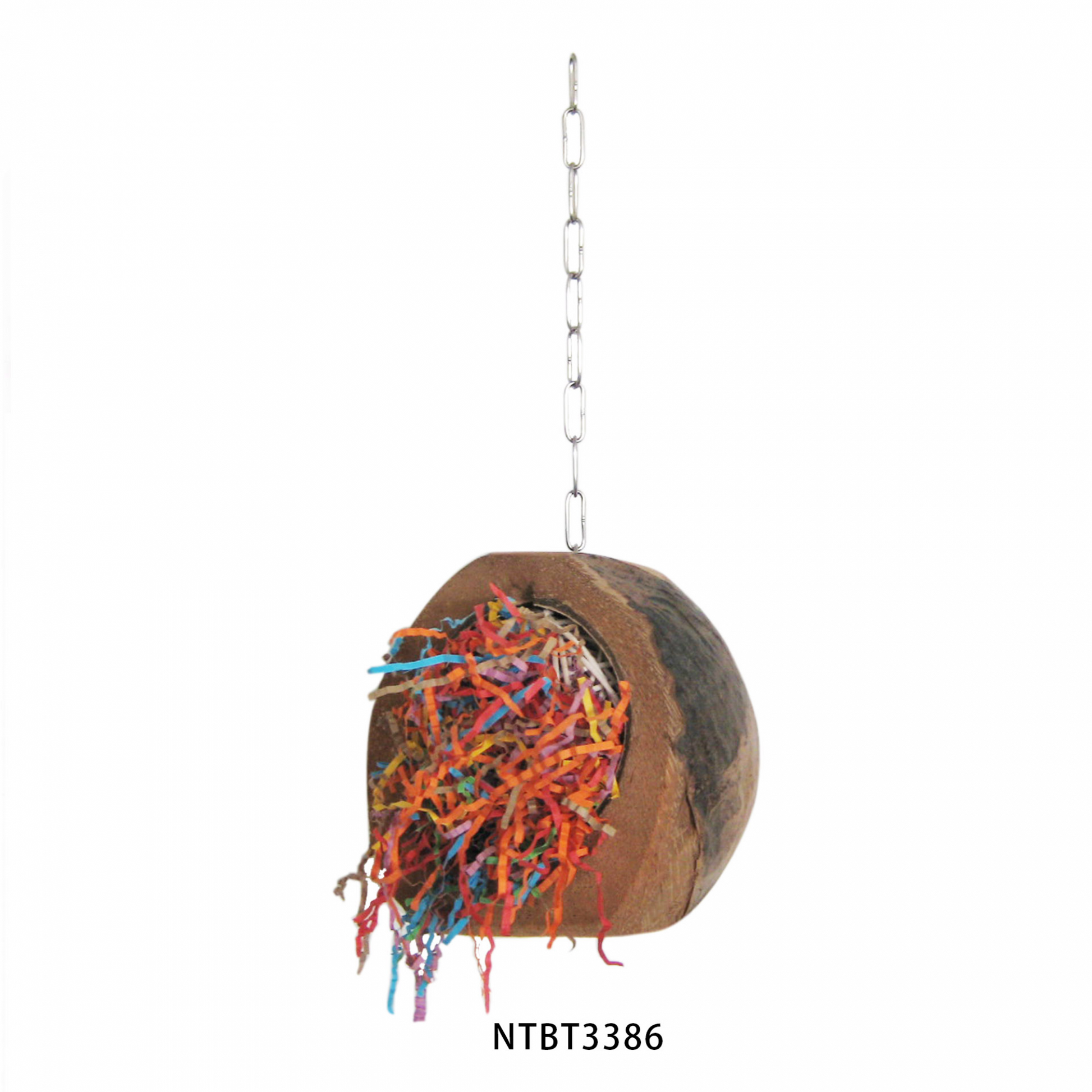 Elevate Playtime with Our Coconut Husk and Color Paper Bird Toy – A Tropical Paradise of Fun for Your Feathered Friend!
