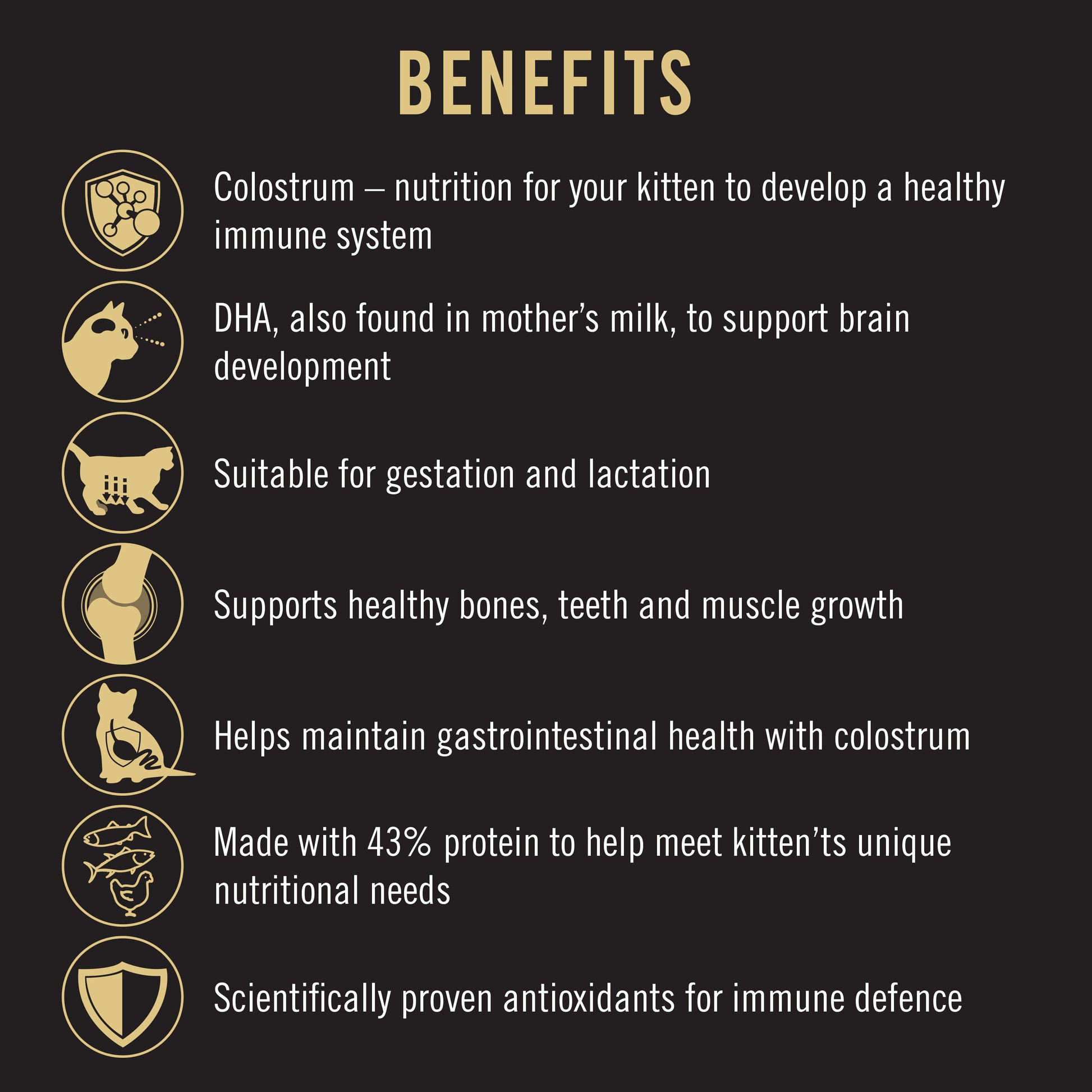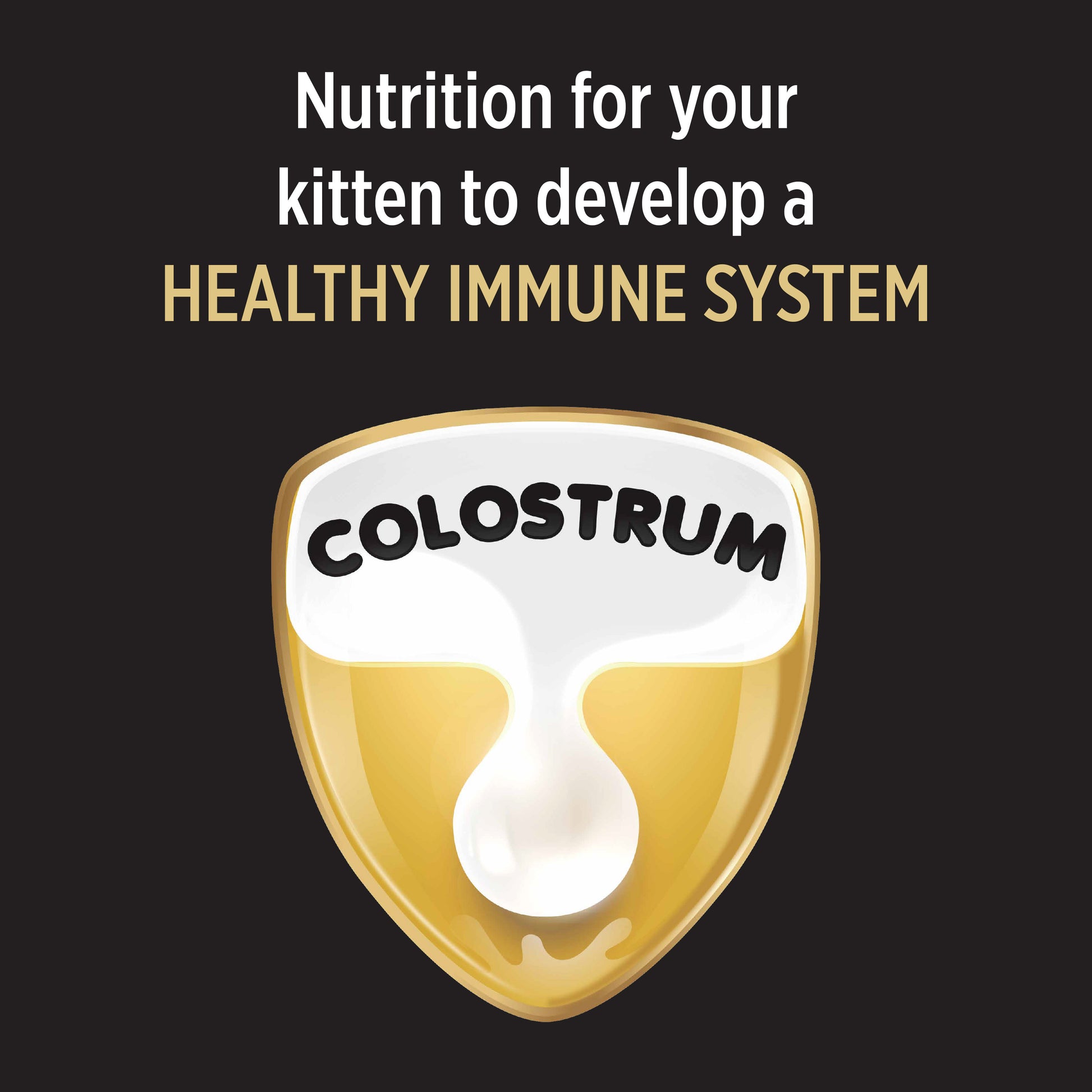 Kittens start to nibble solid food at 3 to 4 weeks of age. PRO PLAN KITTEN STARTER should be introduced at 3 to 4 weeks of age. Product should be mixed with lukewarm water (50-60°C maximum) to preserve the nutrients' quality and to make eating easier. Refer to Feeding Table. At 5 to 6 weeks start reducing the amount of water added until the kitten is able to eat dry kibble. Serve 2-3 daily meals or ad libitum. After weaning, PRO PLAN can be fed moistened or dry. To help your pet maintain an ideal body condition, monitor your pet’s weight on a regular basis, making sure that their ribs are easily felt and their waist is visible when viewed from above. Feeding quantities required to maintain ideal body condition will vary, depending on age, activity and environment. Watch your kitten's weight and adjust food amounts accordingly. Maintaining an ideal body condition can impact your pet’s lifelong health. Once your kitten has reached 6 months of age, transition to PRO PLAN Kitten food. Mix in or complement with Pro Plan Kitten Wet Food for a texture that’s sure to please even the fussiest of eaters.