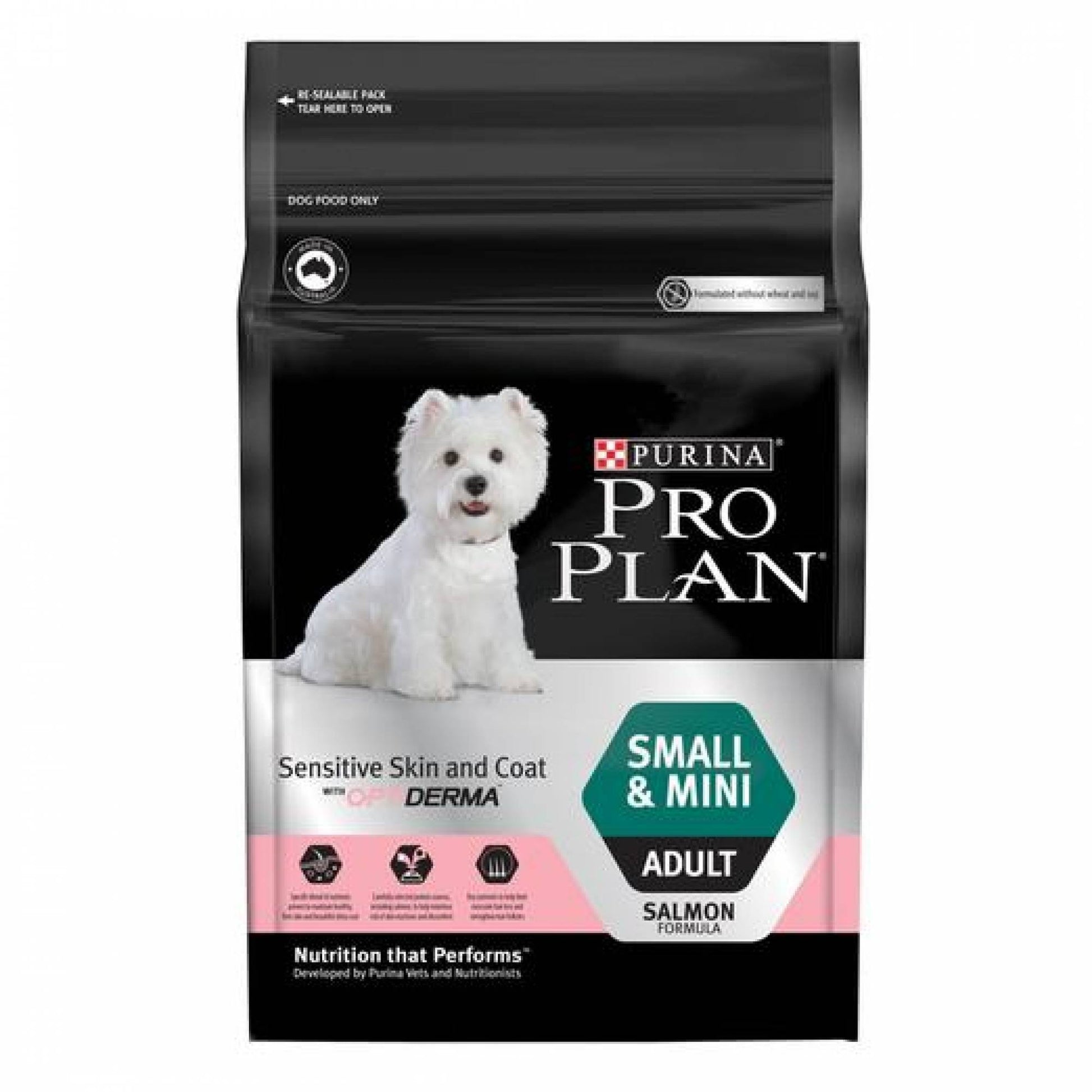 Purina Pro Plan Optiderma Salmon Small & Mini Adult Dog Food is made with natural ingredients, with salmon as the first ingredient. There are no added artificial colours, flavors and preservatives.