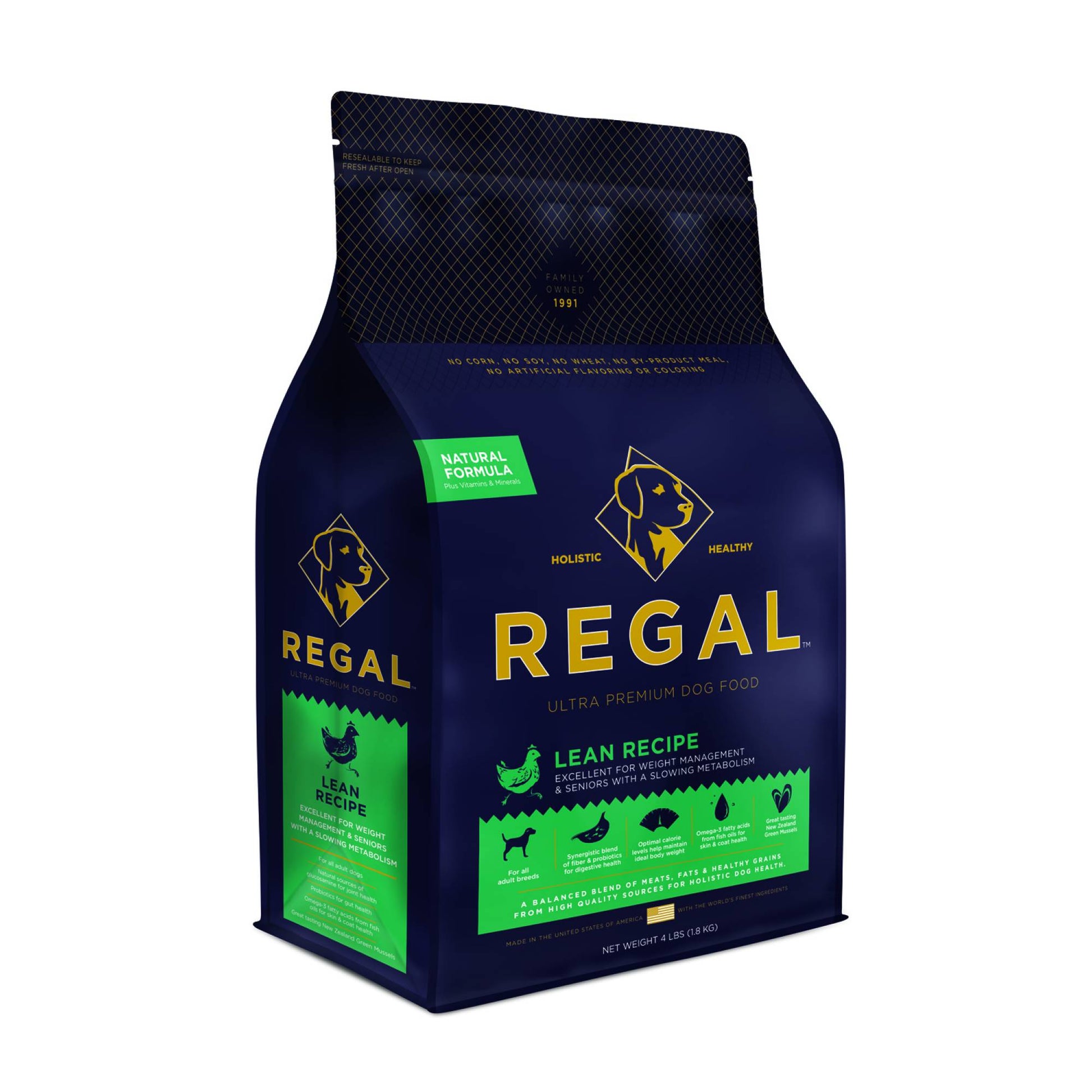 Regal Lean Recipe dog food is formulated to meet the nutritional levels established by the AAFCO Dog Food Nutrient Profiles for maintenance.