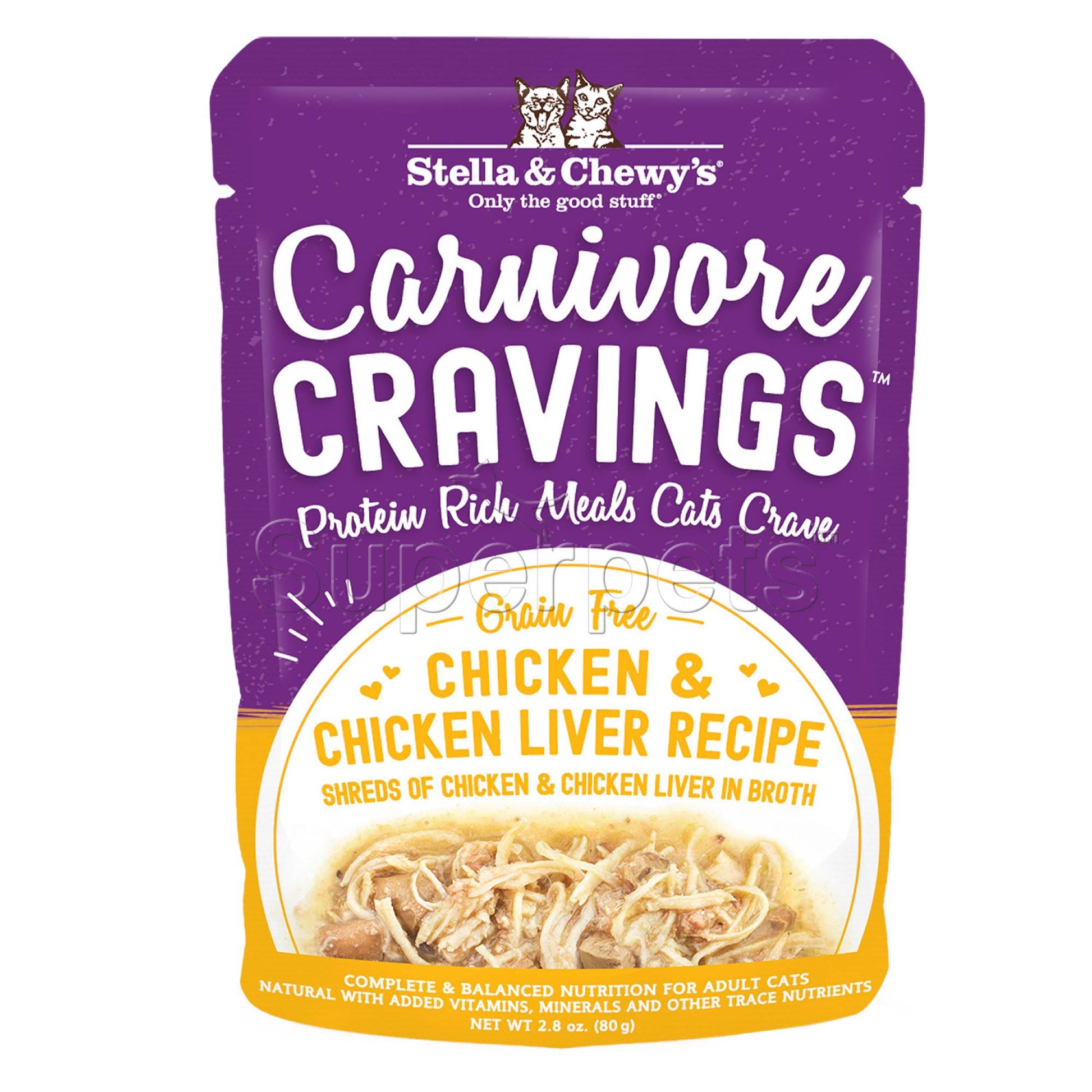 Stella & Chewy's - Cat Carnivore Cravings in Broth Pouch - Chicken & Chicken Liver Recipe 2.8oz (80g)
