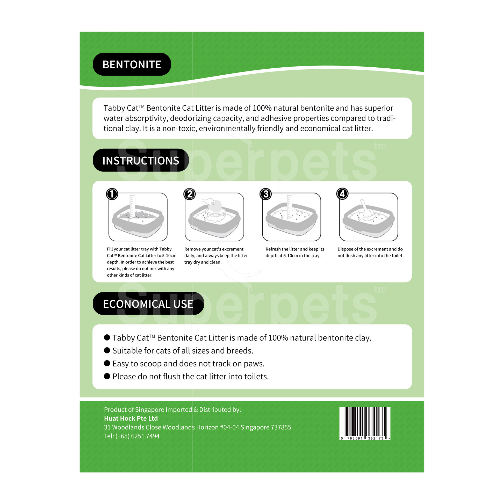 Tabby Cat Bentonite Cat Litter is made of 100% natural bentonite and has superior water absorptivity, deodorizing capacity, and adhesive properties compared to traditional clay. It is a non-toxic, environmentally friendly and economical cat litter.