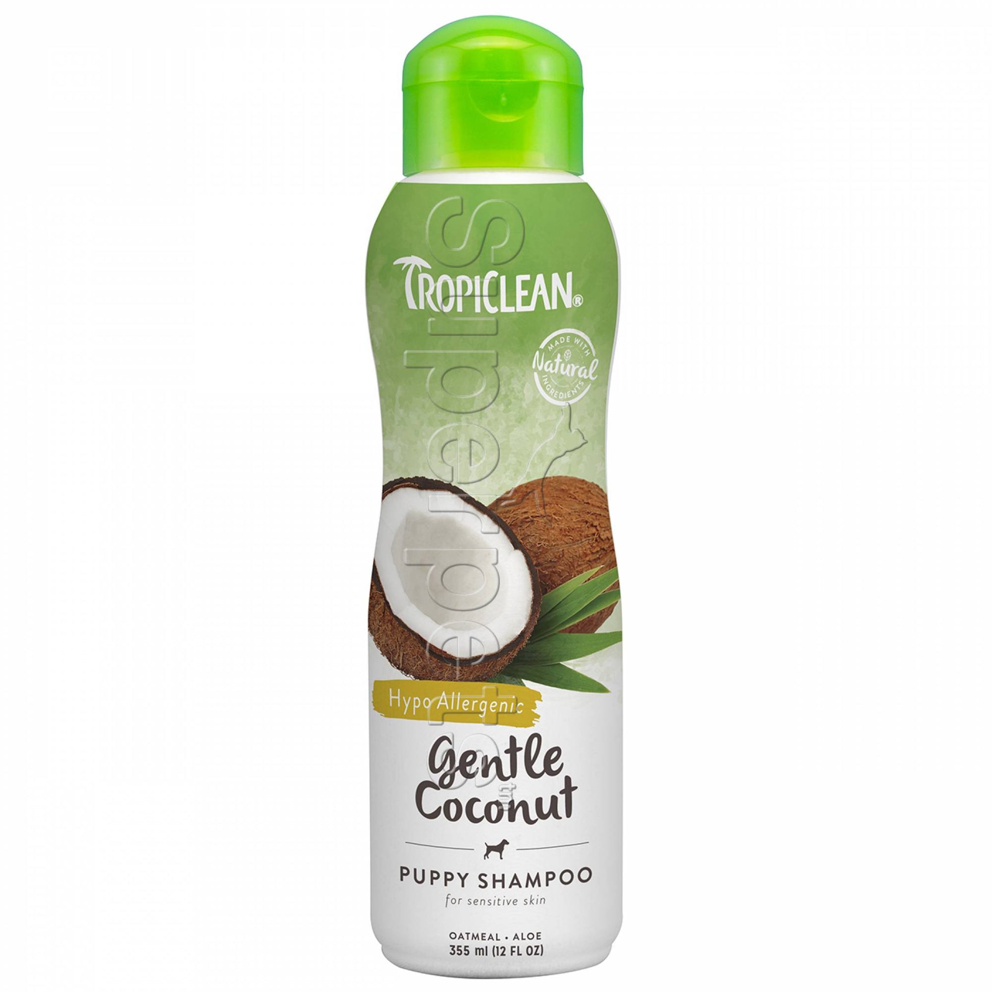 TropiClean Gentle Coconut Pet Shampoo is mild enough for puppies, kittens and pets with allergies. Coconut gently cleanses your pet’s coat while aloe replenishes skin’s moisture for a fresh, healthy clean. Bath-time is gentle and easy with our simple, natural ingredients that keep your pet clean, tear-free, and oh-so-snuggly. For dogs and cats of all ages (and safe for their humans, too).