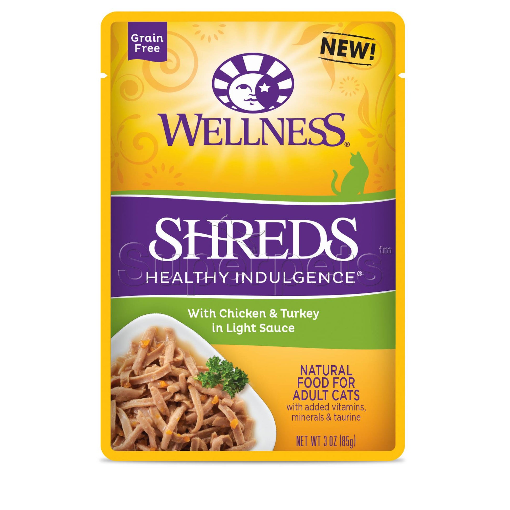 Wellness Healthy Indulgence Shreds Chicken & Turkey In Light Sauce Pouch Cat Food is formulated to meet the nutritional levels established by the AAFCO Cat Food Nutrient Profiles for maintenance.