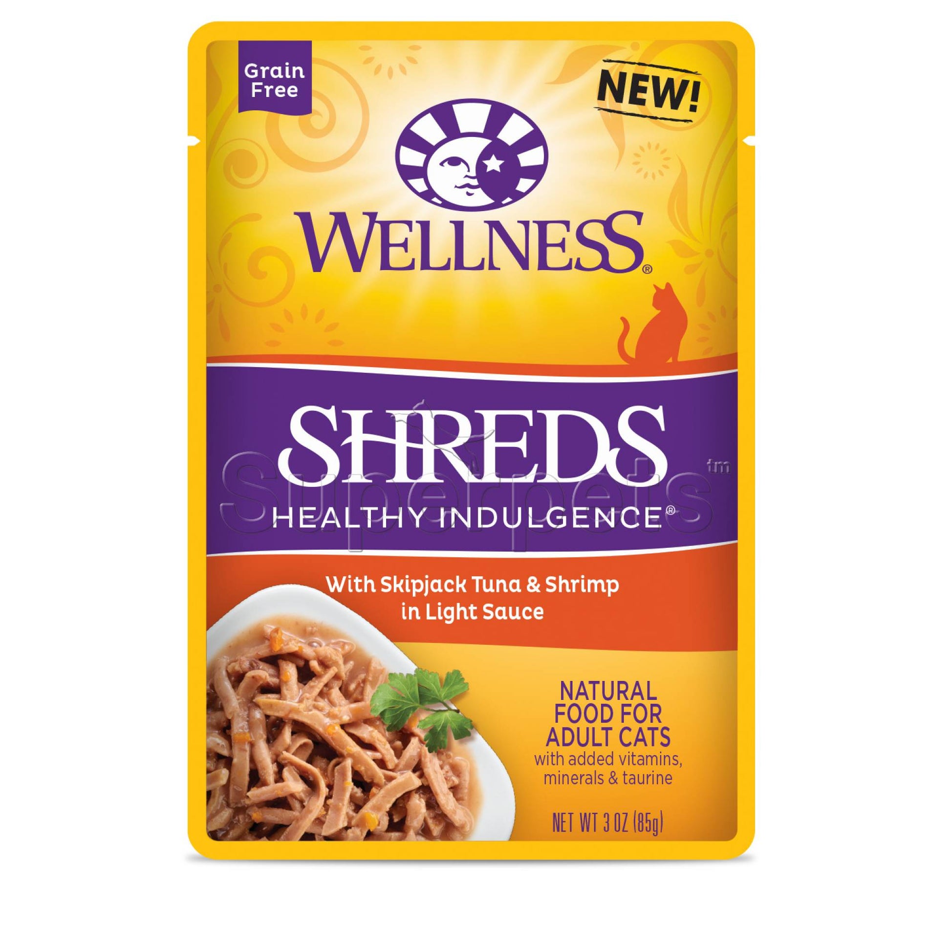 Wellness® Healthy Indulgence® Shreds With Skipjack Tuna & Shrimp in Light Sauce is formulated to meet the nutritional levels established by the AAFCO Cat Food Nutrient Profiles for maintenance.