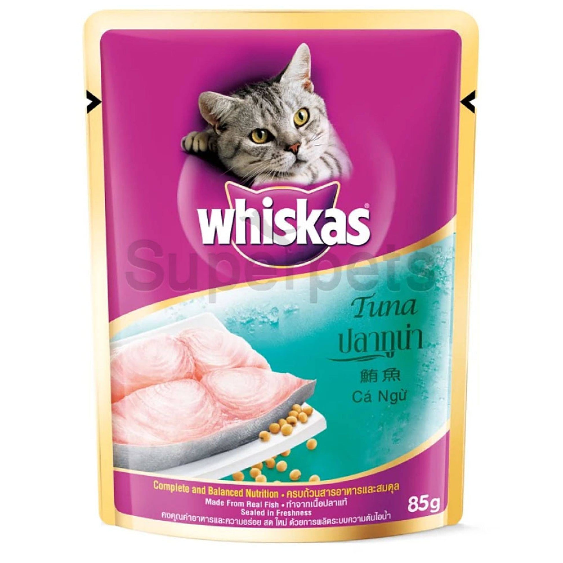 Whiskas food for cats is made from real fish that is tasty and nutritious. It provides complete and balanced nutrition that ensures healthy growth, maintains systematic balance and a beautiful skin and coat. Ingredients Tuna red meat, gelling agents, soy bean oil, vitamins and minerals Nutritional Analysis Protein(Min) - 8% Fat(min) - 5% Fibre(Max) - 3% Moisture(max) - 84%